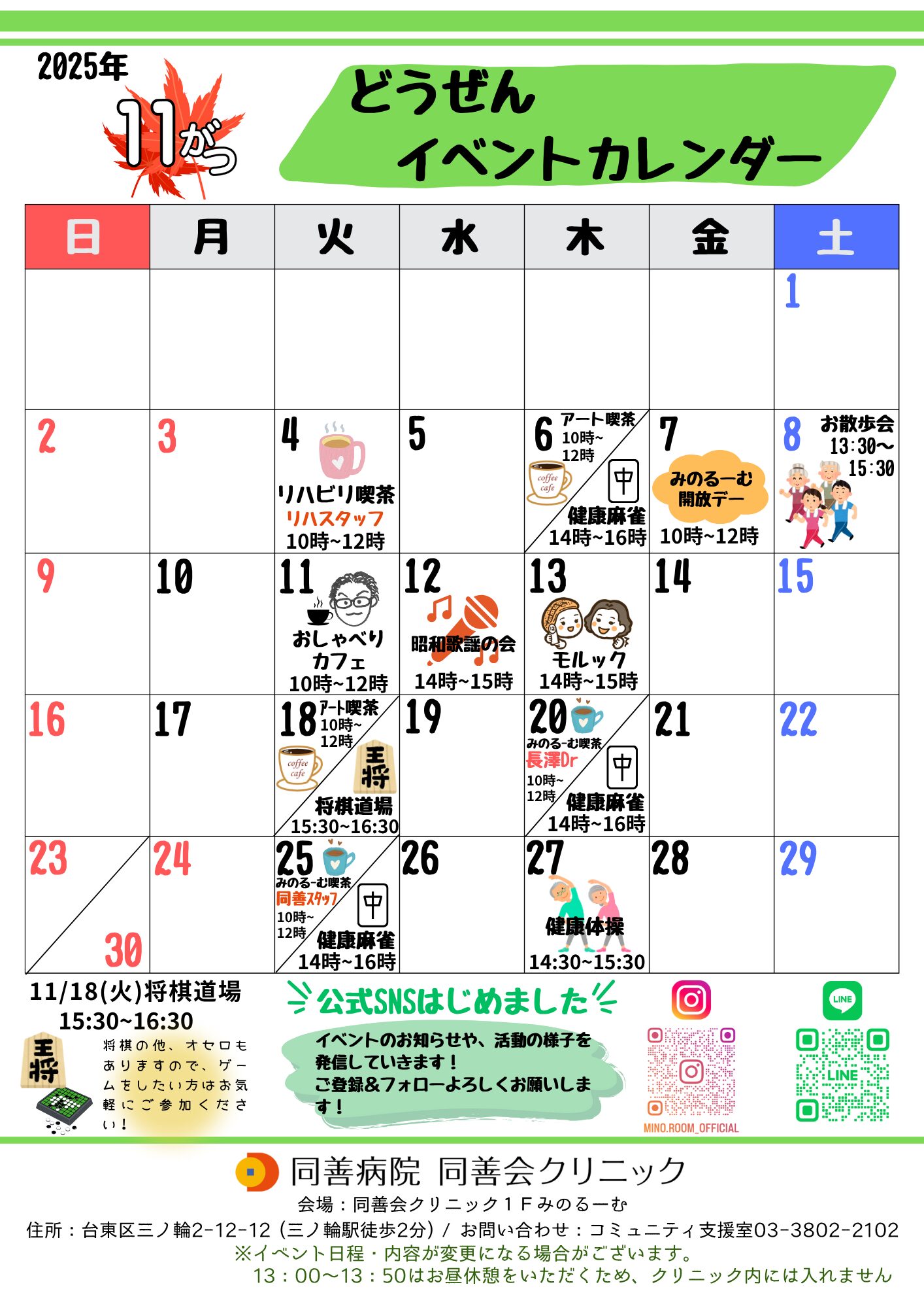 同善会クリニックでは、毎月クリニック内のスペース「みのるーむ」を活用して様々なイベントを企画中です!