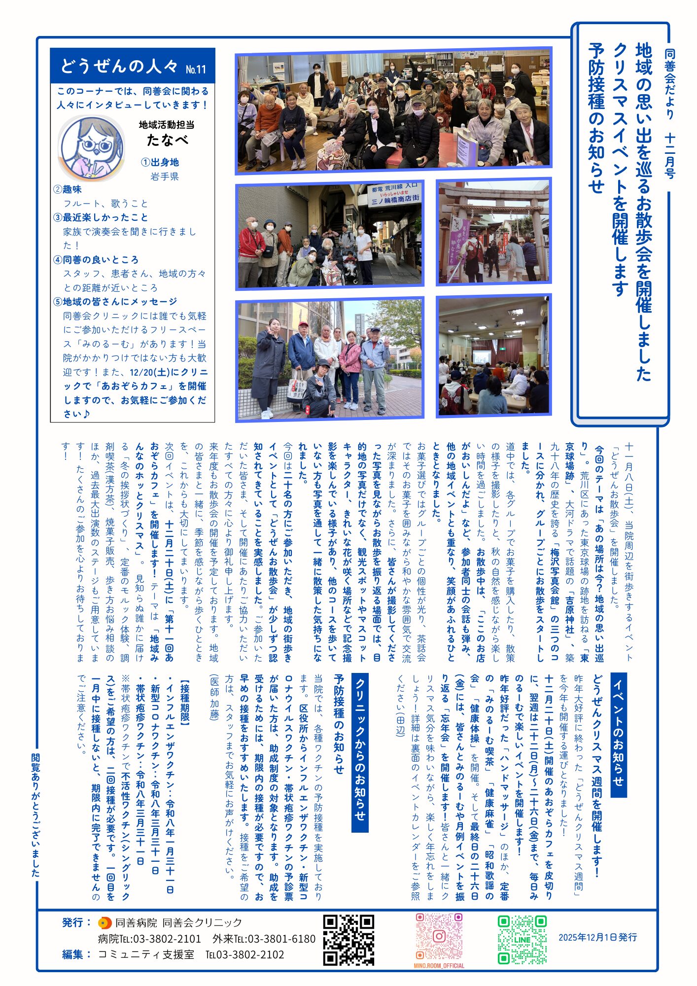 同善会の地域活動や、コミュニティホスピタルとしての院内活動、お知らせなどを