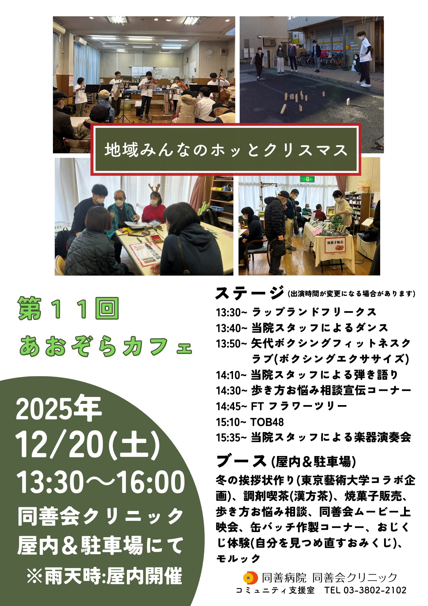 12/20(土)13:30~16:00まで、同善会クリニックにて「第11回あおぞらカフェ」を開催します!
