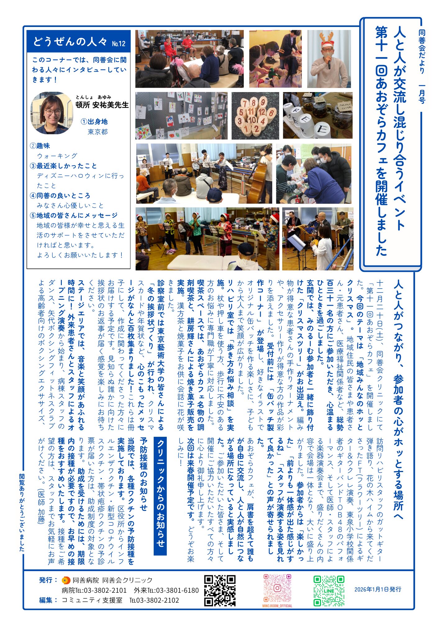 同善会の地域活動や、コミュニティホスピタルとしての院内活動、お知らせなどを